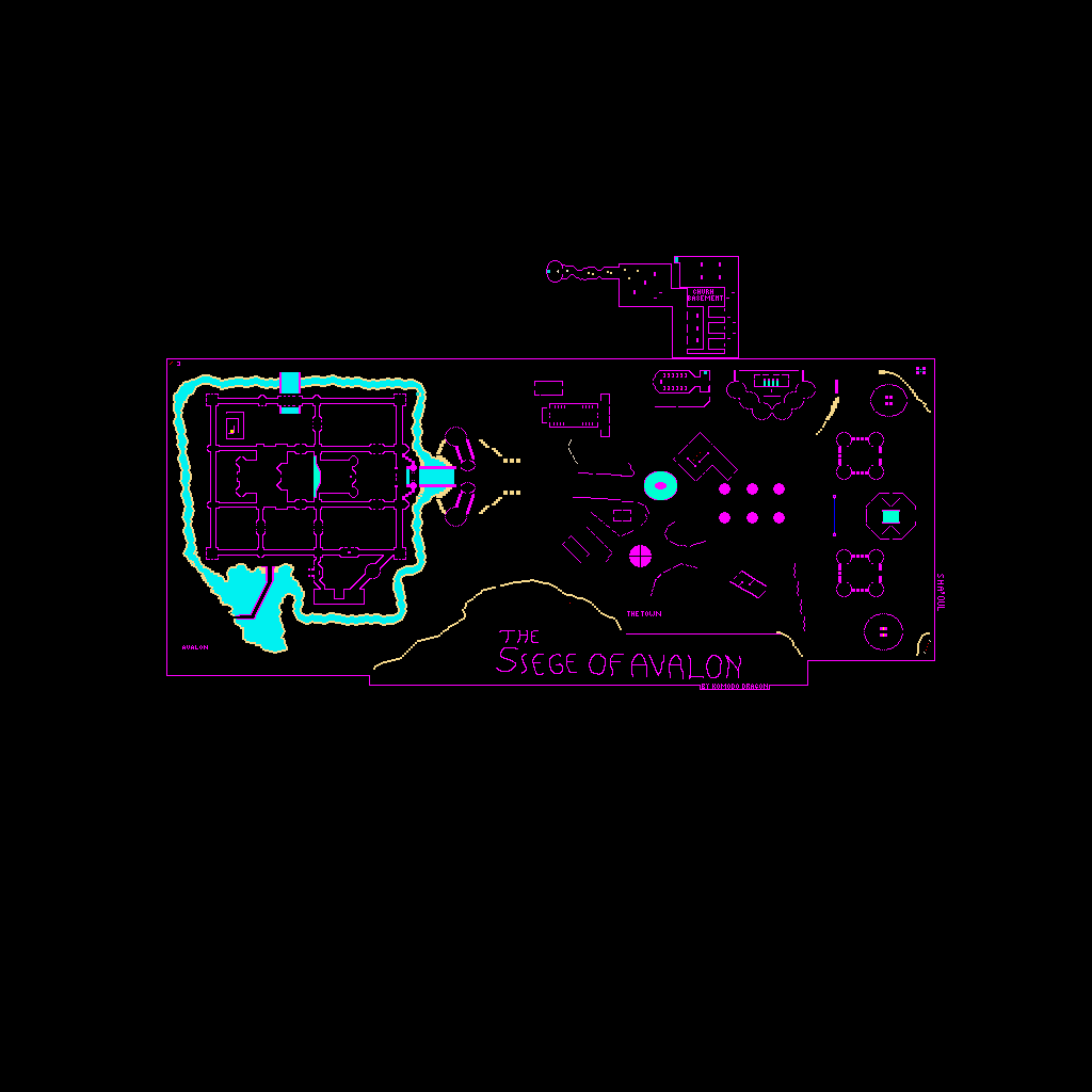 Siege of Avalon is a zone based on the Computer game "Siege of Avalon" The storyline is that the good guys - people of the town Avalon - are being over run by the bad guys - Orcish type people called Sha'oul. As you can see by the updated arena map I am constantly trying to make it as much like the game map as possible. Anyway. On the Left of the map is the "Castle Avalon" in which all the good guys are hidding and defending (freq 0), in the Middle is the town which is basically the battle zone. The Avalonians send out many spies, parties and basically anyone who might be able to help defeat the Sha'oul. On the Right is the bad Sha'oul Guys who are trying to purify their ancient lands of these terrible humaniod Avalonians.